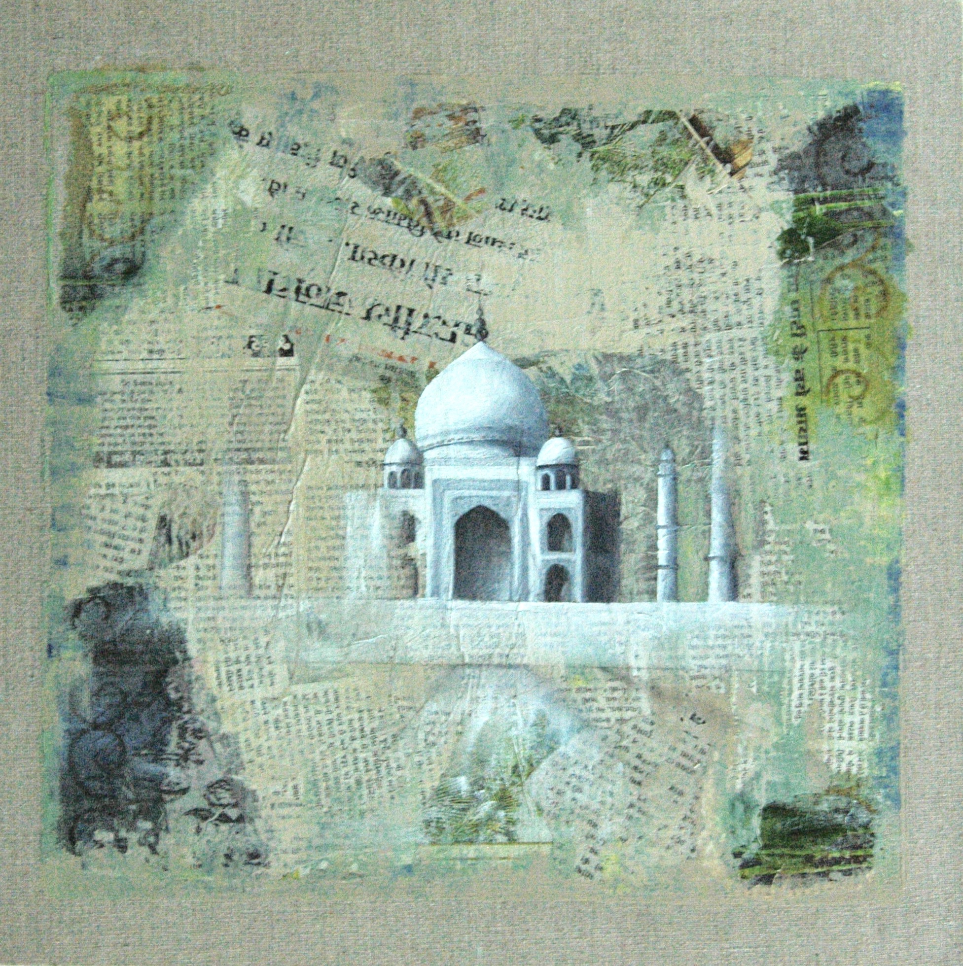 Acrylic and collage on canvas panel, 27x19cm